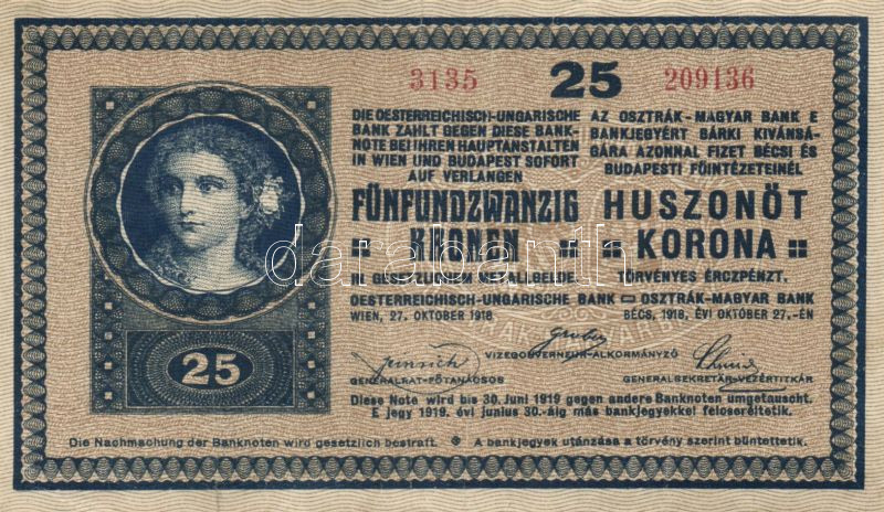 1918. 25K "3000" feletti sorozatszámmal,hullámos hátlappal és rajta "N...