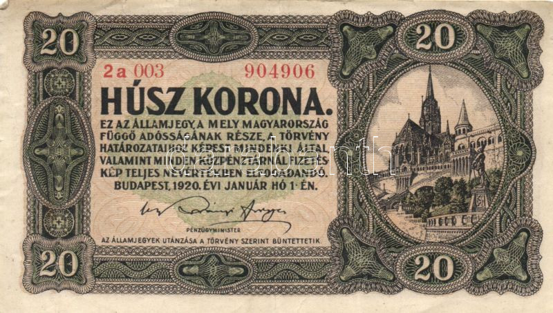 1920. 20K sorszám között nincs pont (3x), egyik nagyon alacsony sorozatszámú T:II,II-