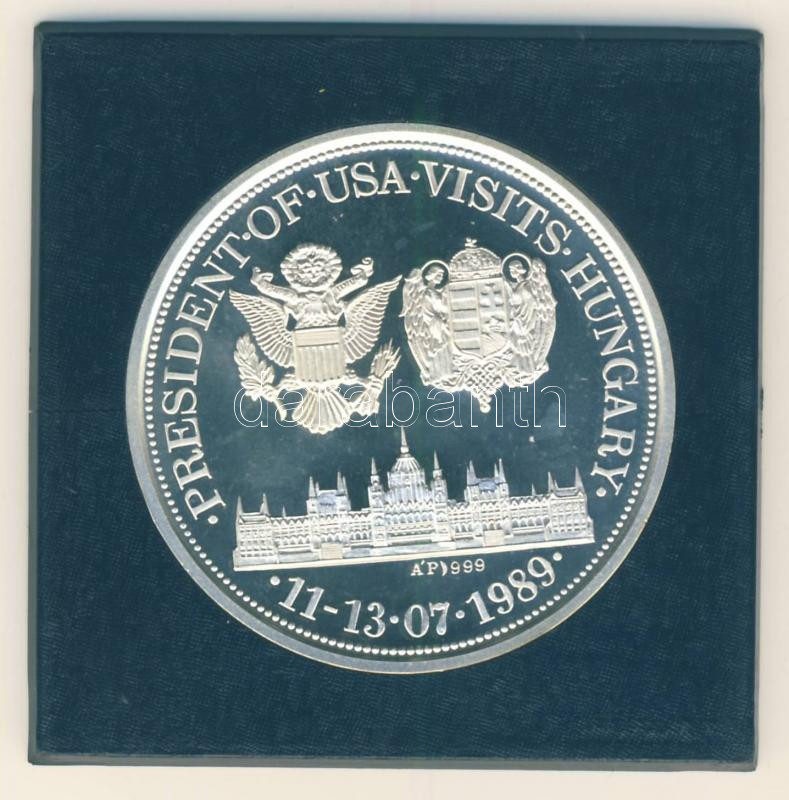 https://www.darabanth.com/en/152-Online-auction/152.0/Numismatics/Hungarian-commemorative-medals-plaques-badges~700012/1989-George-Bush-latogatasa-Magyarorszagon-Ag-999-emlekerem-31-3g-d3D42mm-szignBognar-T~II470632