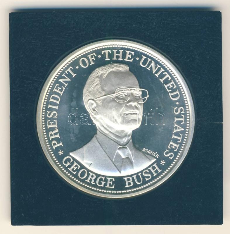 1989. "George Bush látogatása Magyarországon" Ag (999) emlékérem 31,3g (d=42mm) szign:Bognár T:PP Tokban!