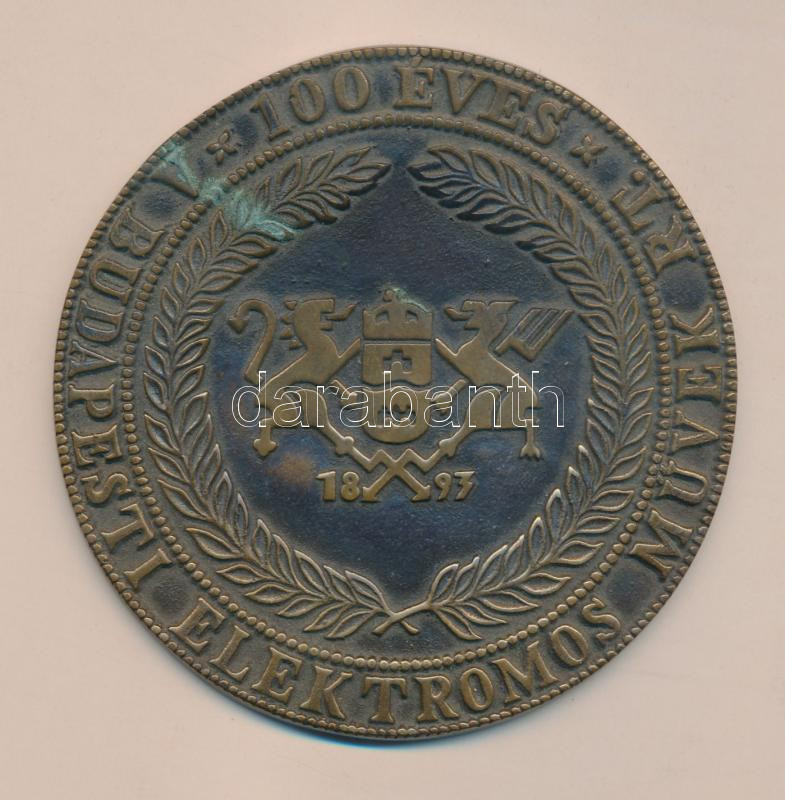 1993. "100 éves a Budapesti Elektromos Művek Rt." Br emlékplakett (d=10,5cm) T:2