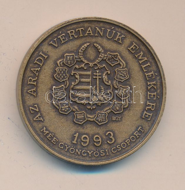 1993. "MÉE Gyöngyösi Csoport-Az Aradi Vértanúk Emlékére / Aulich Lajos" Br piefort emlékérem szign:B.GY. (d=42mm) T:BU