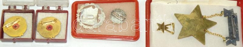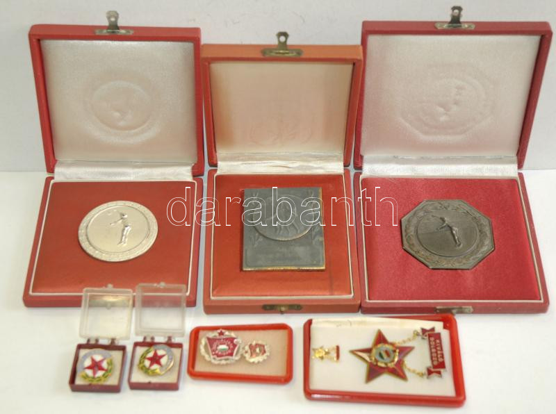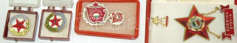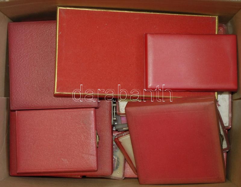 Description: Nagy doboznyi szocialista kitüntetés tétel, közte sok "Kiváló Dolgozó" adományozói dobozban, több igazolvánnyal is,"Szocialista Brigád" kitüntetés dobozában, emellett néhány sportérem dísztokban