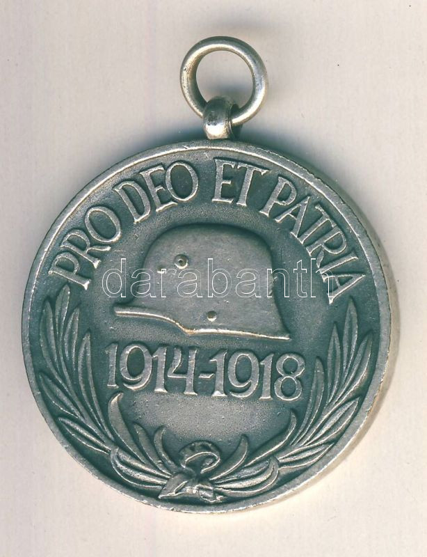 1918. Magyar Háborús Emlékérem "Pro Deo et Patria" ezüstözött Br kitün... https://www.darabanth.com/en/152-Online-auction/152.0/Numismatics/Military~700019/1918-Magyar-Haborus-Emlekerem-Pro-Deo-et-Patria-ezustozott-Br-kituntetes-mellszalag-nel~II469725