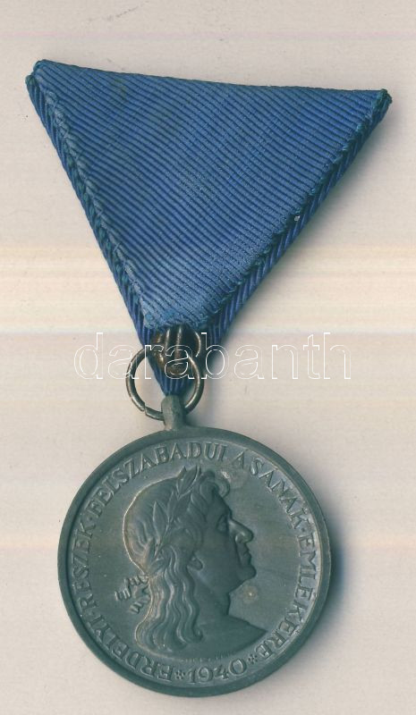 1940. "Erdélyi részek felszabadulásának emlékére" emlékérem szalaggal ... https://www.darabanth.com/en/152-Online-auction/152.0/Numismatics/Military~700019/1940-Erdelyi-reszek-felszabadulasanak-emlekere-emlekerem-szalaggal-T2-3Cbr3E1940-Commemo~II469278