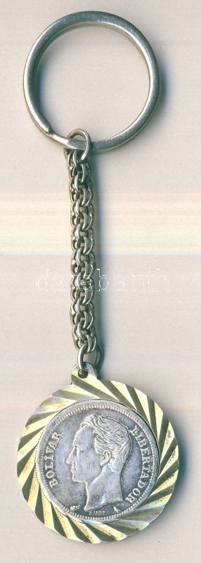 1983. 100Ft "Simon Bolivár" T:BU Eredeti tokban, tanúsítvánnyal! + Venezuela 1960. 2B Ag keretben, kulcstartóként T:3