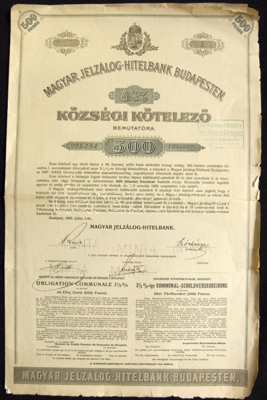 https://www.darabanth.com/en/152-Online-auction/152.0/Numismatics/Shares-Securities-and-Tickets~700008/1899-Magyar-Jelzalog-Hitelbank-kozsegi-kotelez23245-500Fr-rol-MINTA-perforaciokkal~II472838