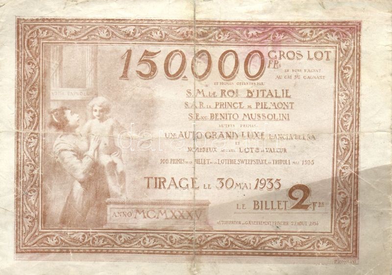 Olaszország/Monaco 1935. Jótékonysági lottószelvény 2Fr T:III-