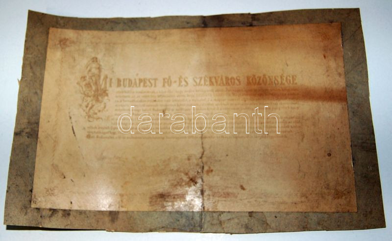 1892 Kossuth Lajost Budapest díszpolgárává választó okiratról készült keményhátú kép 20x31 cm (sérült)