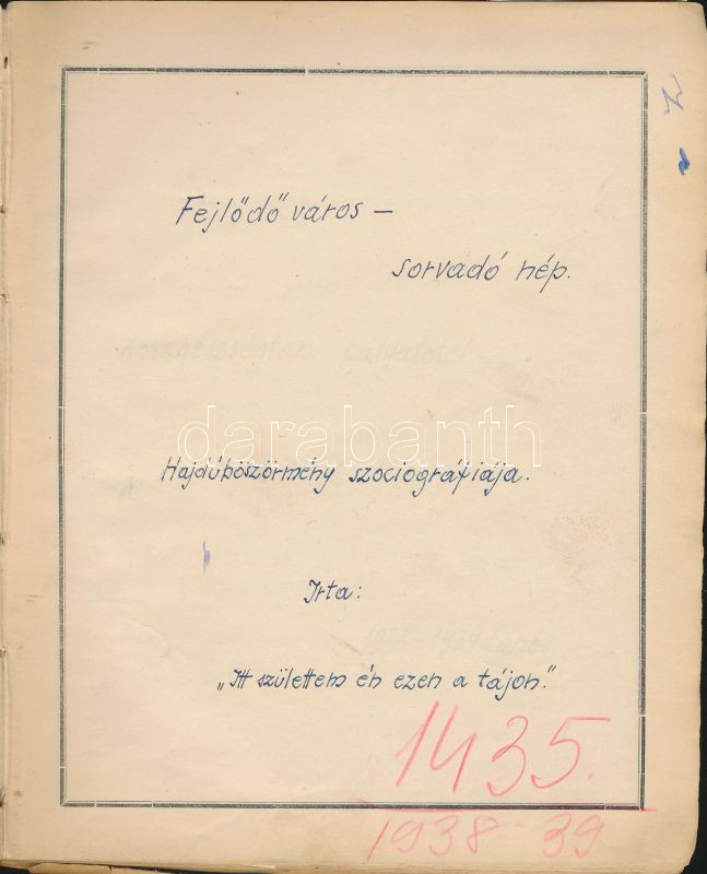 https://www.darabanth.com/en/152-Online-auction/152.0/Other-collectibles/Historical-documents-manuscripts~225/1938-Fejlodo-varos--sorvado-nep-Hajduboszormeny-szociografiaja-keziratban-Tobb-szaz-~II469438