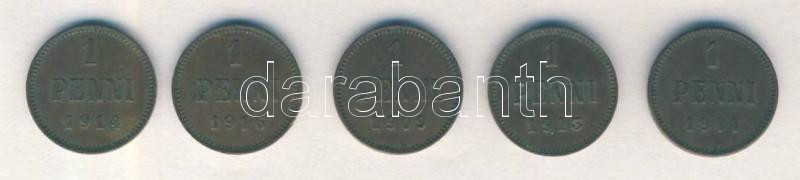 Finland/Grand Duchy 1909-1916. 1 Penni (5x) different years C:XF