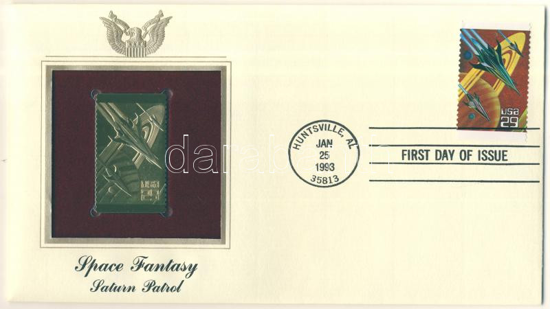 Amerikai Egyesült Államok/Huntsville 1993. "Űrfantázia /Szaturnusz őrjárat" aranyfóliás bélyeg replika FDC borítékban, bélyeggel és elsőnapi bélyegzővel és ismertetővel T:1