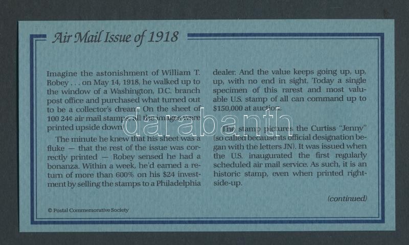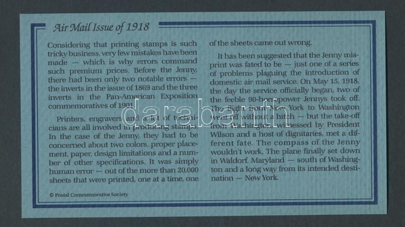 Description: USA/Washington "Fordított Jenny- 22K aranyfóliás bélyeg replika borítékban angol nyelvű tájékoztatóval T:1