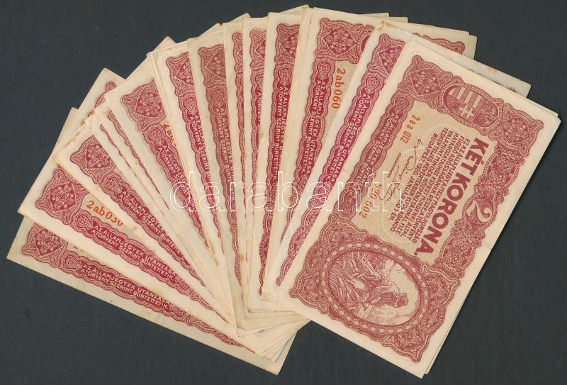 https://www.darabanth.com/en/154-Online-auction/154.0/Numismatics/Hungarian-banknotes~6000315/1920-2K-ketfajta-sorszam-25x-kozte-egymas-utani-egymashoz-kozeli-es-alacsony-sorsoroz~II481406