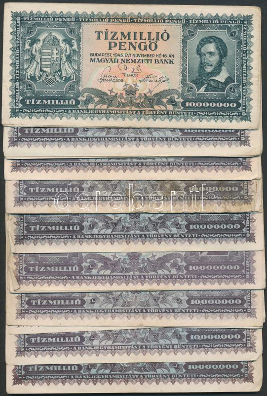 1945. 10.000.000P (4x) + 1946. 10.000.000MP (27x) közte különböző szín...