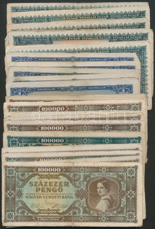 https://www.darabanth.com/en/154-Online-auction/154.0/Numismatics/Hungarian-banknotes~6000315/1945-100000P-plus-1000000P-plus-10000000P-osszesen-59db-Tvegyes~II480866