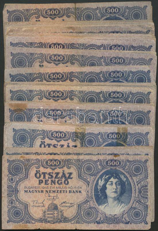 1945. 500P (50x), közte orosz "P" betű helyett magyar "N" betű T:III,III-,IV