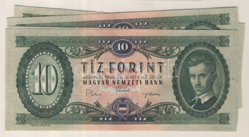 1969. 10Ft (4x) egymás utáni sorszámmal T:I