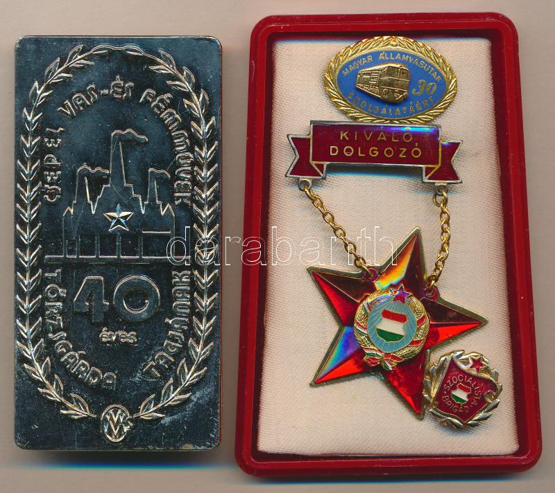 ~ 1970. "Magyar Államvasutak 30 éves szolgálatáért kitüntetés + Kiváló Dolgozó kitüntetés T:1- + "Csepel Vas- és Fémművek törzsgárda tagjának 40 év" szögletes fém plakett T:1 Eredeti díszdobozban!