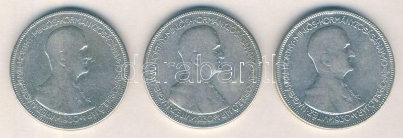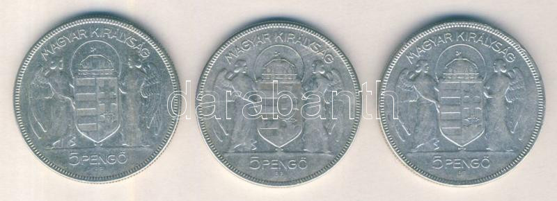 1930. 5P Ag "Horthy jobbra" (3x) T:3