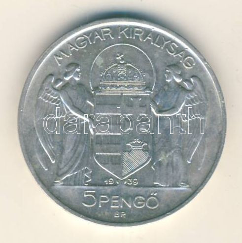https://www.darabanth.com/en/154-Online-auction/154.0/Numismatics/Hungarian-metal-and-silver-coins~6000316/1939-5P-Ag-Horthy--balra-T2-~II477923