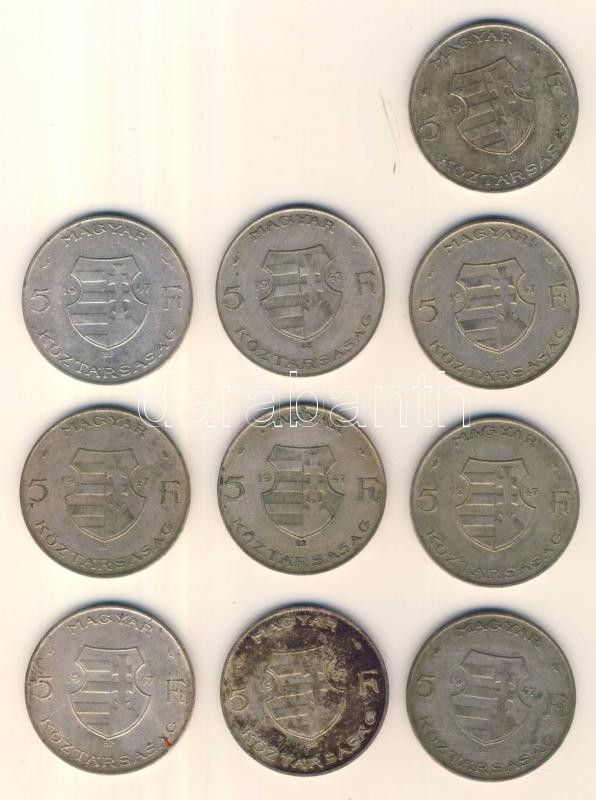 https://www.darabanth.com/en/154-Online-auction/154.0/Numismatics/Hungarian-metal-and-silver-coins~6000316/1947-5Ft-Ag-Kossuth-10x-T2-3~II478160