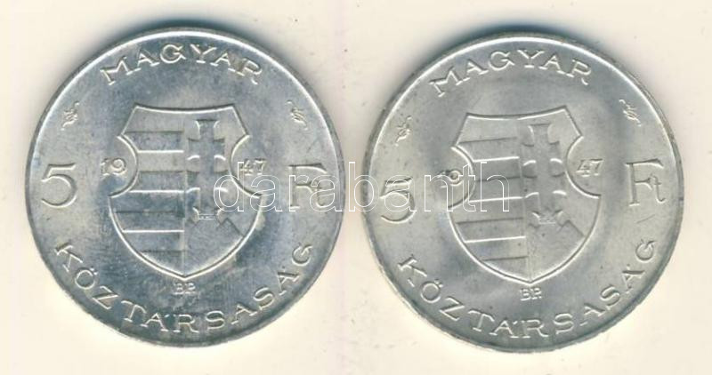 https://www.darabanth.com/en/154-Online-auction/154.0/Numismatics/Hungarian-metal-and-silver-coins~6000316/1947-5Ft-Ag-Kossuth-2x-T2~II478008