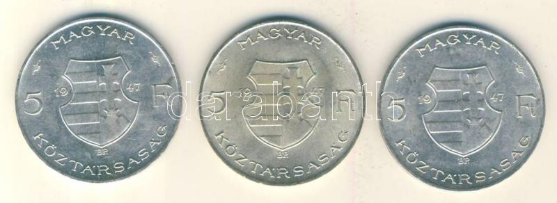 1947. 5Ft Ag "Kossuth" (3x) T:2,2-