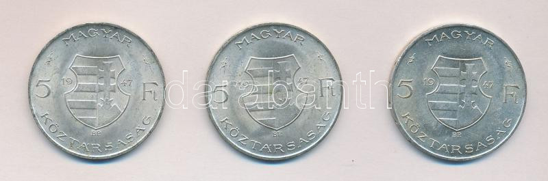 1947. 5Ft Ag "Kossuth" (3x) T:2