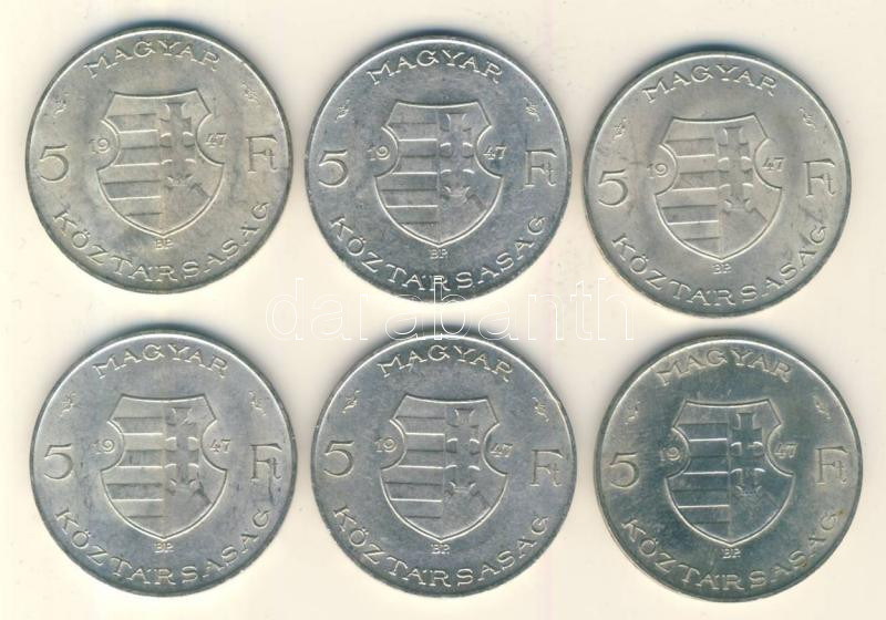 https://www.darabanth.com/en/154-Online-auction/154.0/Numismatics/Hungarian-metal-and-silver-coins~6000316/1947-5Ft-Ag-Kossuth-6x-T2-2-~II478002