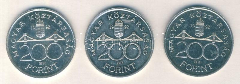 1992. 200Ft Ag "MNB" (3x) T:1-,2