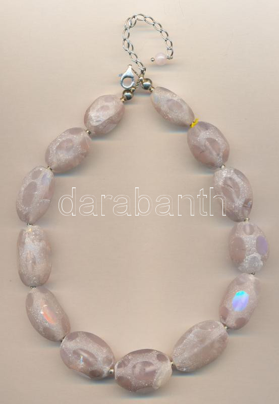 Csiszolt és savmaratott nagy rózsakvarc nyaklánc ezüst (Ag) szerelékke...