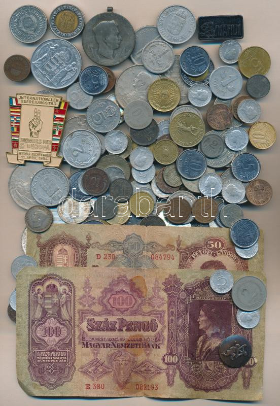 https://www.darabanth.com/en/154-Online-auction/154.0/Numismatics/Mixed-banknote-and-coin-lots~6000326/Vegyes-erme-tetel-nehany-jelvennyel-es-bankjeggyel-koztuk-3db-ezusterme-100Ft-Urrepul~II479635