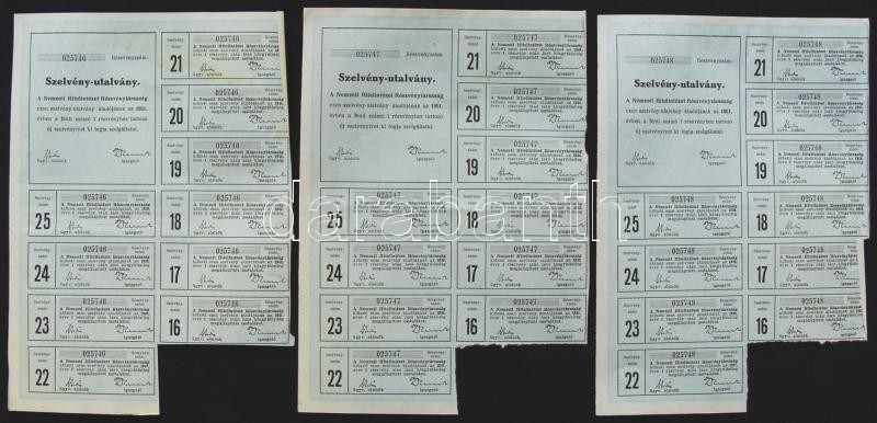 1926. "Nemzeti Hitelintézet Részvénytársaság" részvénye 10P-ről, (3x) egymás utáni sorszámmal, szelvényekkel
