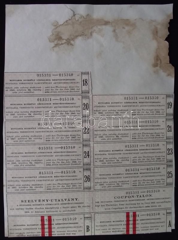 https://www.darabanth.com/en/154-Online-auction/154.0/Numismatics/Shares-Securities-and-Tickets~6000329/Budapest-1926-Hungaria-Egyesult-Gozmalmok-Reszvenytarsasag-reszvenye-15P-rol-szelvenyek~II479558