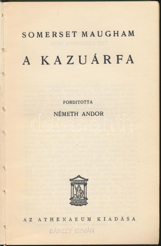 https://www.darabanth.com/en/154-Online-auction/154.0/Postcards/Books-Other-rarities~6000227/Sommerset-Maugham-A-kazuarfa-Athenaeum-192p~II480506