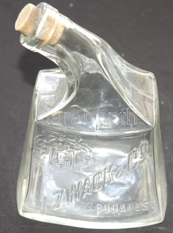 Érdekes formájú Zwack üveg parafa dugóval 18cm magas