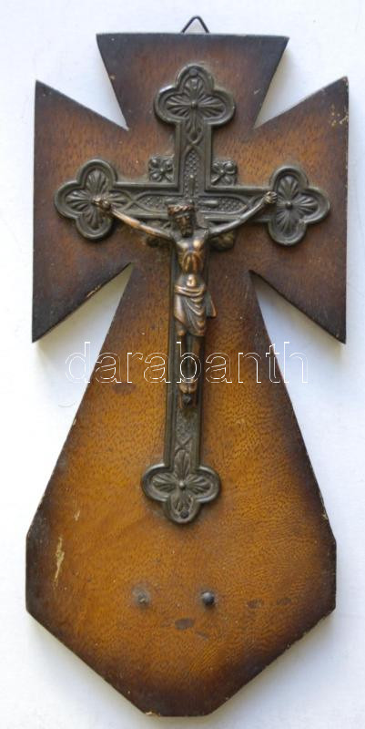 Fém feszület fa lapon 11x23cm
