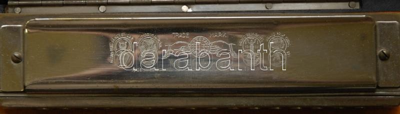 cca 1930 M. Hohner professzionális kromatikus (váltós) szájharmonika eredeti keménytokban / Professional Hohner achordion in original hard-case 21 cm