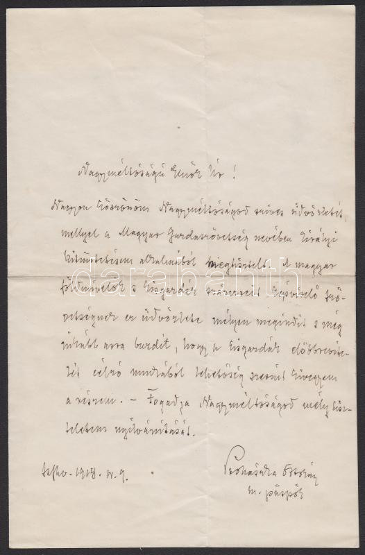 https://www.darabanth.com/en/154-Online-auction/154.0/Postcards/Historical-documents-manuscripts~6000209/1918-Prohaszka-Ottokar-szekesfehervari-puspok-autograf-levele~II479010
