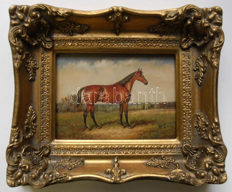 R.T. jelzéssel: Ló, olaj-farost, jelzett, keretben 24x29cm