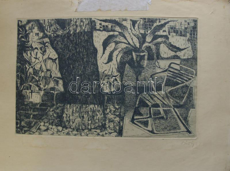 Túry Mária (1930-1992): Kert, rézkarc-papír, jelzett, 30x40cm