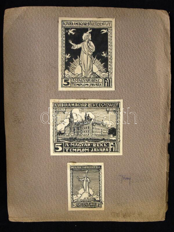 1913 Tary Lajos (1884-1972): A magyar béke templom javára segélybélyeg 3db terve
