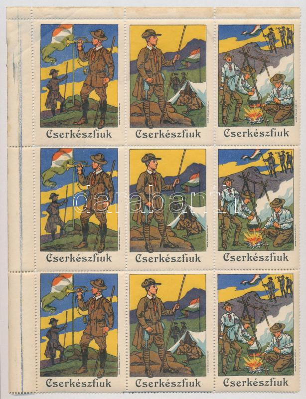 Cserkészfiúk levélzárók kilencestömb / Scout poster stamps