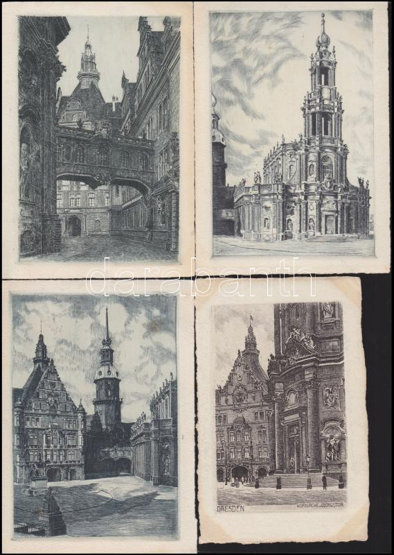 10 db használatlan, régi, művészi Drezda rézkarc képeslap