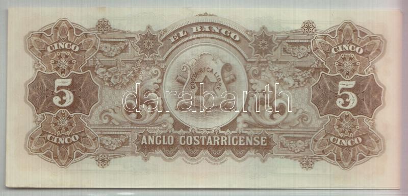 Costa Rica/Köztársaság/Banco Anglo Costarricense ~1911. 5C kiadatlan b...