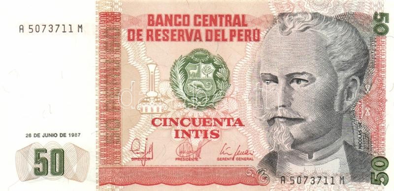 Peru 198. 1000 Soles de Oro + 1987. 50 Intis (3x) + 100 Intis (3x) + 500 Intis C:Unc, AU