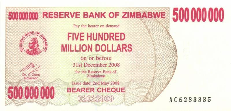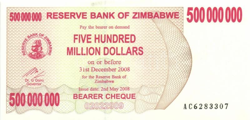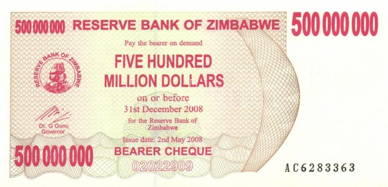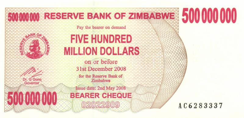 Zimbabwe 2007. 100$ (2x) + 2008. 500.000.000$ (6x) egymáshoz közeli so... https://www.darabanth.com/en/155-Online-auction/155.0/Numismatics/Foreign-banknotes~5000350/Zimbabwe-2007-100USD-2x-plus-2008-500000000USD-6x-egymashoz-kozeli-sorszamokkal-TI-3Cbr3EZimbabw~II480045