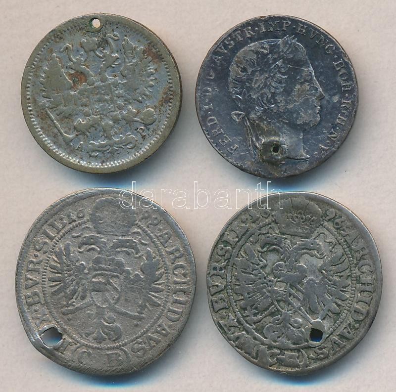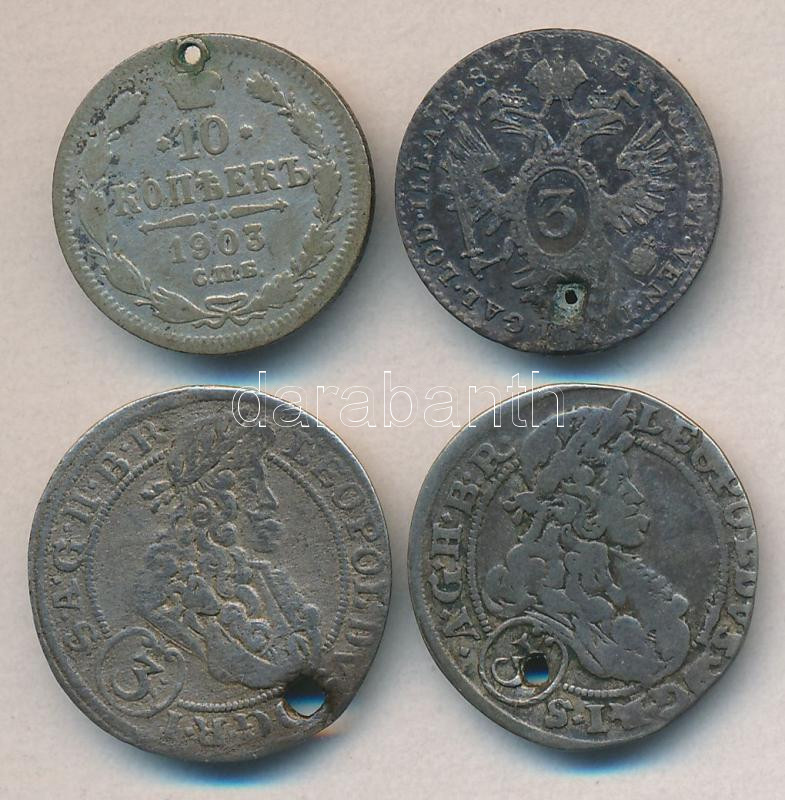 Description: Ausztria 1696. 3Kr Ag + 1699. 3Kr Ag + 1837. 3 Kr Ag + Oroszország 1903. 10k Ag T:3 ly.