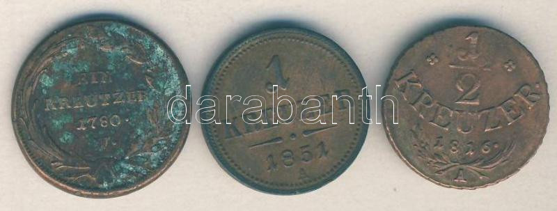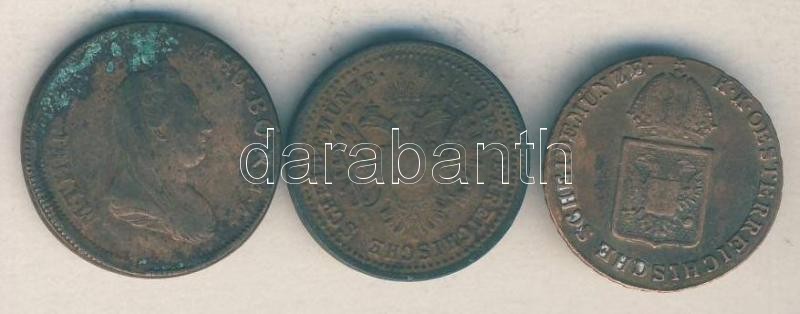 Austria 1816A 1/2 Kreuzer + 1851A 1 Kreuzer + Ausztria/lengyel verdejel 1780W 1 Kreuzer C:VF,F